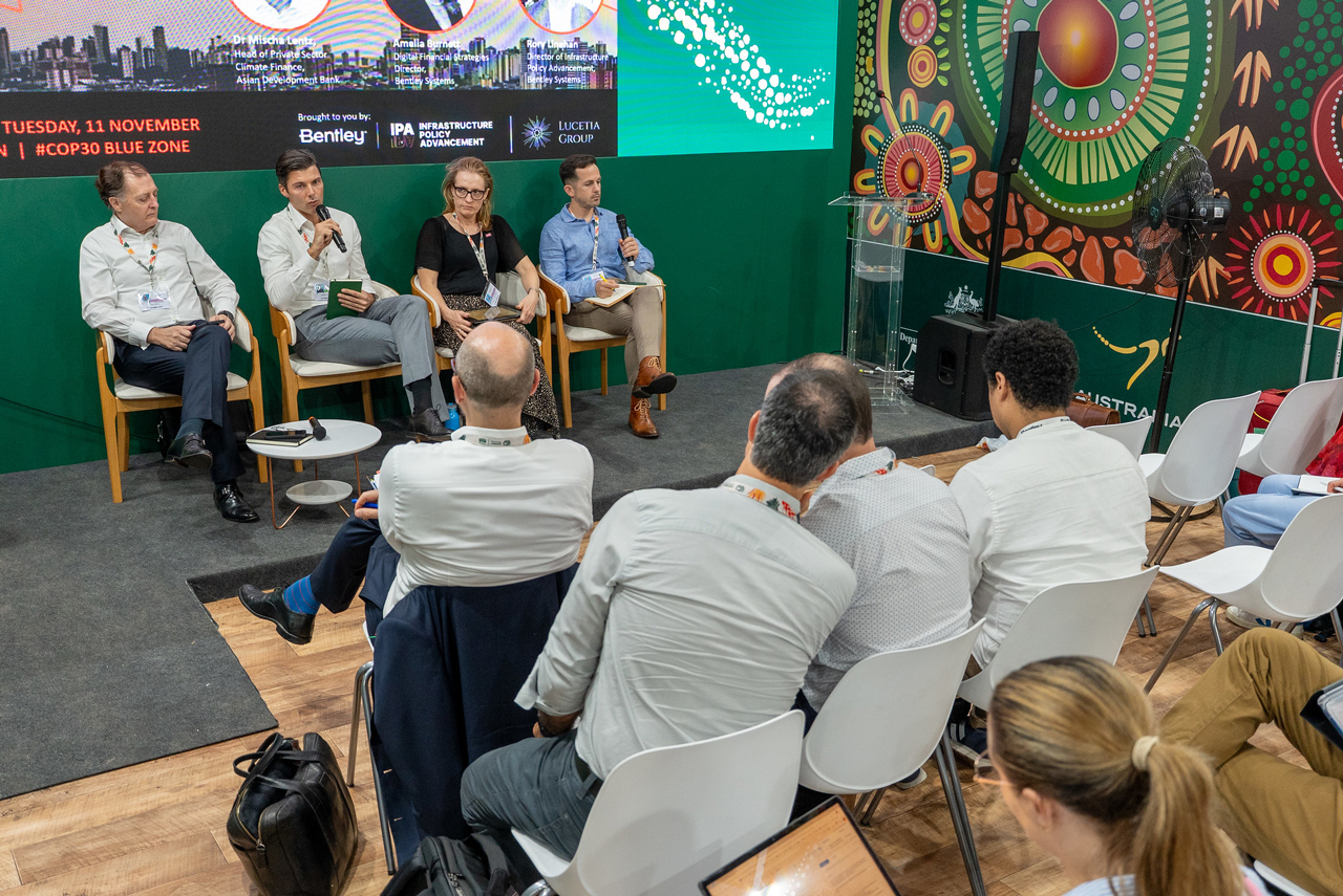 Twin Talks COP30, hosted at the Australian Pavilion in the Blue Zone, was designed to confront that reality head-on. Opening the session, Bentley Systems’ digital financial strategies director, Amelia Burnett, grounded the discussion in the practical role technology must play in capital mobilization. Drawing on her experience at Bentley Systems and the G20 Global Infrastructure Hub, she highlighted a core barrier to scale, fragmentation, “an ecosystem where project developers, finance, insurers, policymakers, and technology providers are not always aware of each other’s challenges and opportunities.”